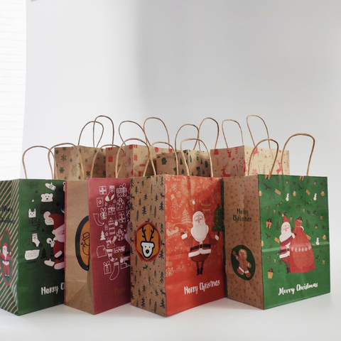 Bolsas de regalo navideñas personalizadas, paquete de 24 bolsas de papel marrón